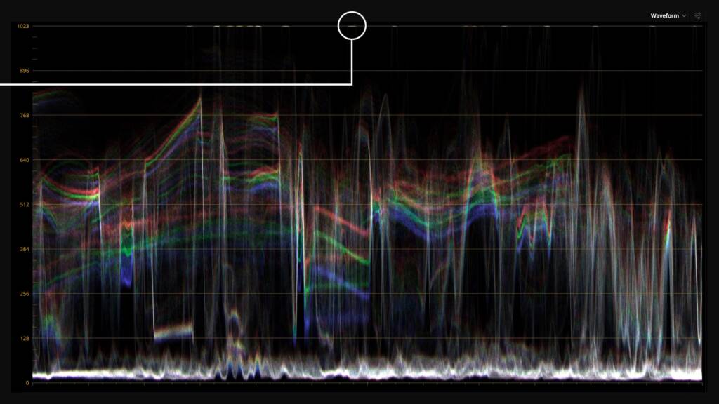 Aus diesen Aufnahmen erstellten wir Loops, die wir auf der LED-Wand abspielen konnten. Sobald sich im Hintergrund etwas bewegt, wird die Illusion plausibler. Die Farben und der Weissabgleich wurden normalisiert und die Kontrastkurve so angepasst, dass die Speculars, also die Bereiche im Bild, die eine Lichtquelle darstellen, auf der Waveform bei 100% lagen. Schliesslich sollen diese später im Studio auch brillant leuchten.