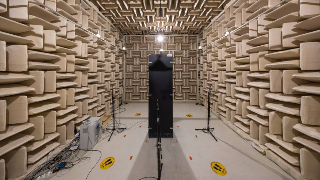 Neben der Produktion wird im Electrolux-Werk in Susegana auch viel im Bereich Forschung und Entwicklung betrieben. So wird beispielsweise die Akustik der Produkte genauestens untersucht. Zu diesem Zweck gibt es mehrere akustische Räume, in denen die Geräuschemissionen gemessen und geprüft werden.