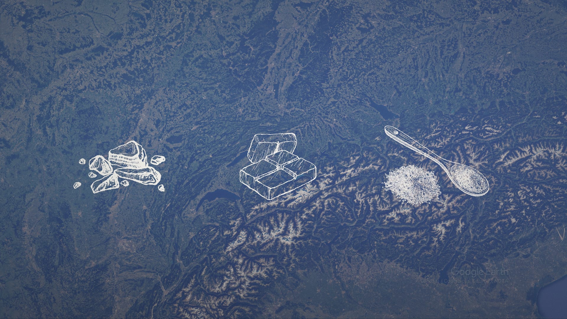Der Wissensstand in Bezug aufs Thema Ernährungssysteme war unter den Teilnehmenden des Symposiums sehr unterschiedlich. Deshalb war es wichtig, das Script des Films in einer Sprache und Komplexität zu verfassen, die auch für Laien verständlich ist. Gemeinsam mit der Wyss Academy haben wir eine Storyline entwickelt, die für alle Akteure verständlich ist und die Thematik an einem konkreten Beispiel erfassbar macht. Da kein Film- oder Fotomaterial zur Verfügung stand, haben wir den Film mit Stock Material und Illustrationen bebildert. Zusätzlich haben wir Zahlen und Fakten mit animierten Illustrationen verdeutlicht. Die abschliessenden typografisch formulierten Fragen machen die Überleitung zur Diskussion.