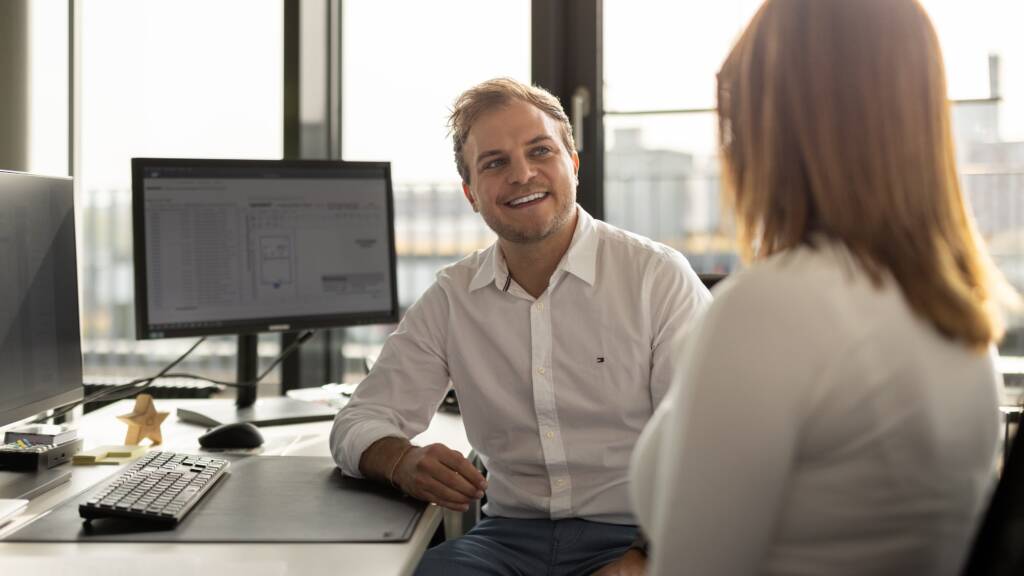 Herzstück der Jobseiten ist ein Film, in dem Mitarbeitende zu Wort kommen und erzählen, wie sie arbeiten, wie sie zusammenarbeiten und wie sie die Werte Fortschritt, Herzblut, Teamgeist und Lebenswert im Alltag leben. Die Interviews mit den 33 Protagonist:innen haben wir unscripted und als Gespräch geführt.