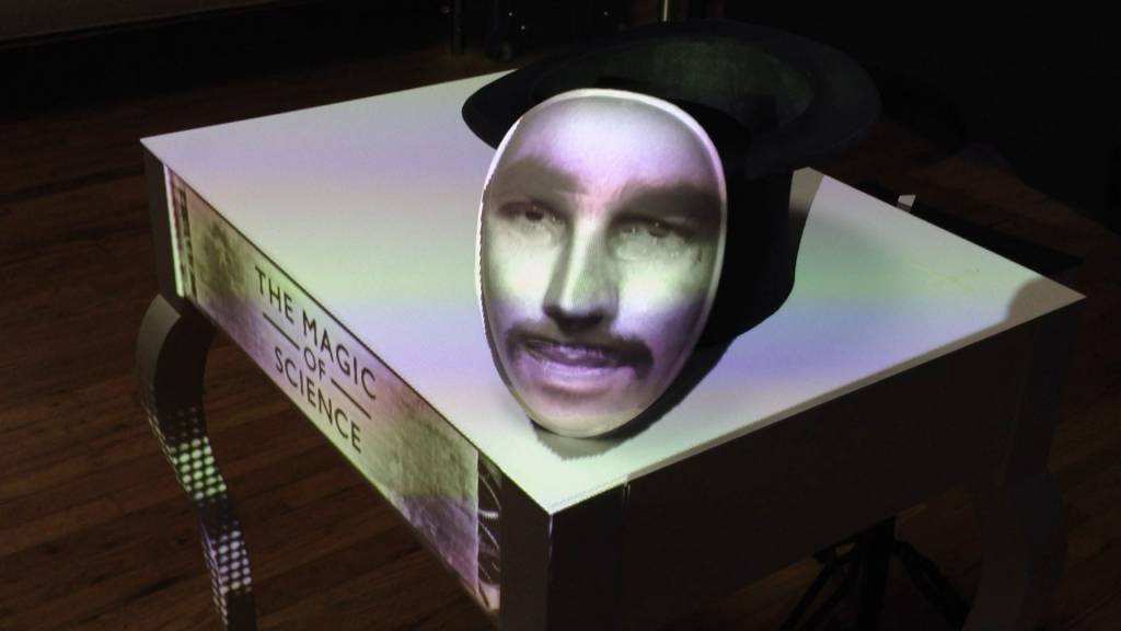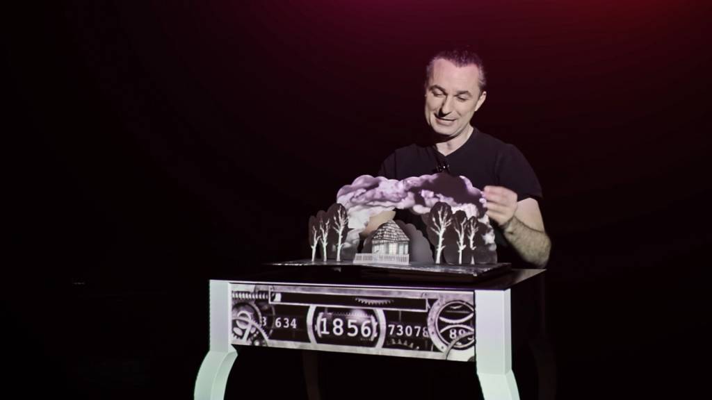 Ausgestattet mit einem weissen Tisch und einem Projektor präsentierte Marco Tempest an der TED Gobal 2012 die Geschichte von Nikola Tesla.